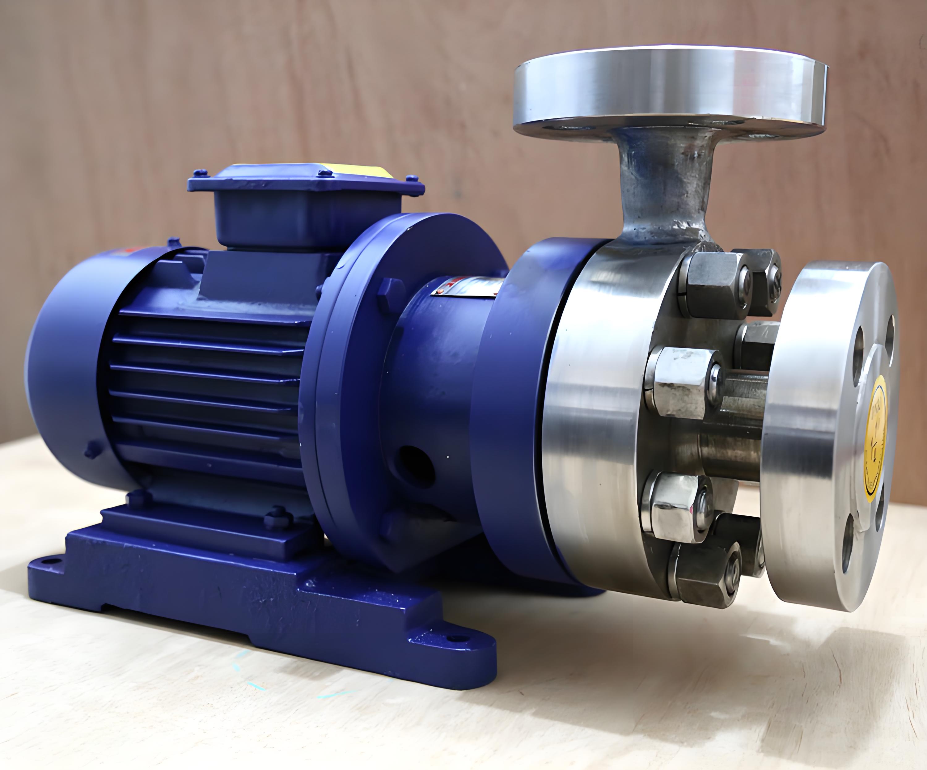嚴禁空轉和介質抽空,以免損壞磁力傳動器和軸承。輸送含有固體顆粒的介質時,應在泵入口安裝過濾器,防止顆粒進入泵內造成損壞。